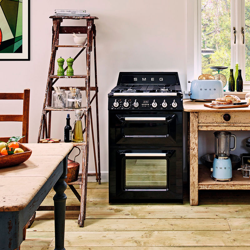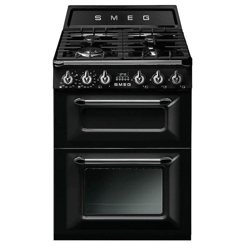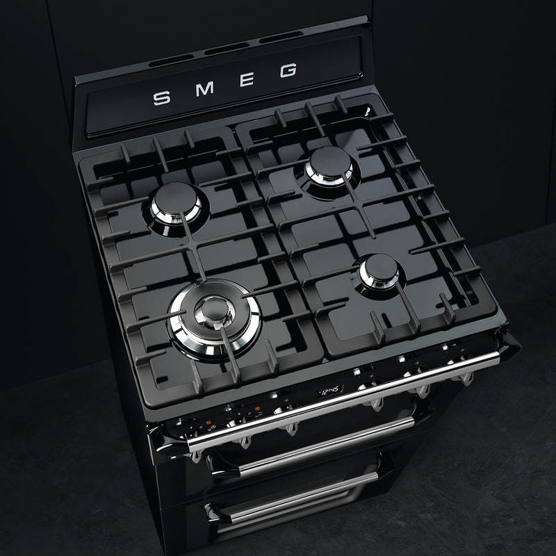 Smeg TR62BL – Cocina Dual Fuel Victoria 60 cm, doble horno 61 L+35 L, encimera gas 4 fuegos