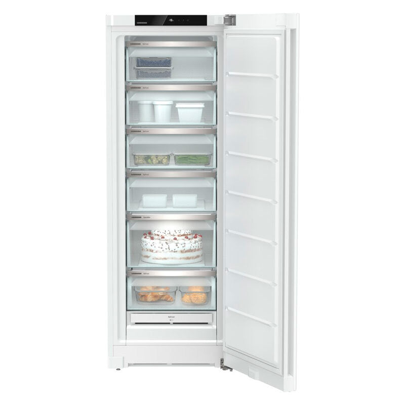 El Liebherr FNd 5026 001 22 es un congelador independiente NoFrost de 239 L de capacidad neta, con eficiencia energética clase D y funcionamiento silencioso (solo 36 dB). Con tecnología BluPerformance, su diseño cuidado en blanco brillante, control táctil y funciones avanzadas como SuperFrost y FrostProtect, es una solución ideal para el almacenamiento moderno y eficiente en el hogar.