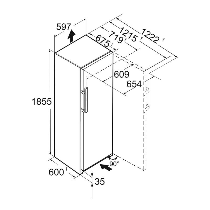 - Iluminación LED en el techo y estantes flexibles: 7 cristales (uno divisible), VarioSafe y botella ondulada.