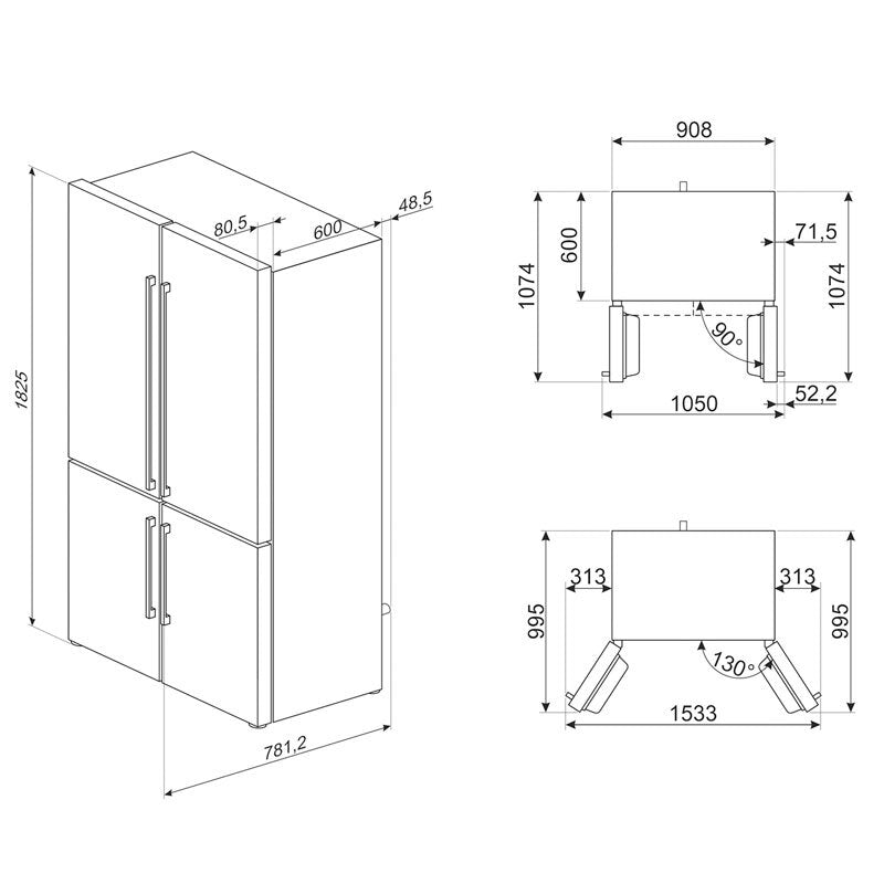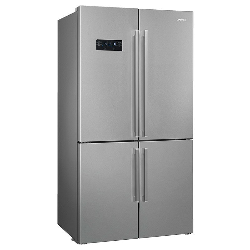 El Smeg FQ60XDE es un frigorífico americano de cuatro puertas estilo moderno en acabado inoxidable anti-huellas, con una impresionante capacidad neta total de 572 litros (376 L refrigerador + 196 L congelador). Está equipado con tecnología Total No‑Frost, compresor Inverter de baja emisión sonora (37 dB), sistema de refrigeración MultiFlow, cajón Life Plus 0 °C, y display LED táctil externo con alarmas visuales y auditivas para control intuitivo.