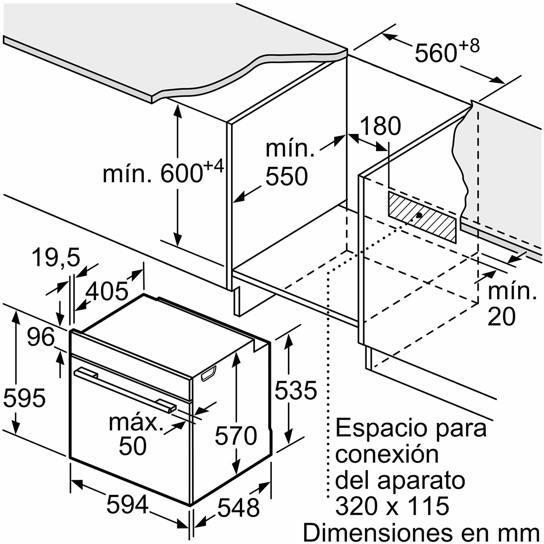 - Dimensiones del hueco: 56 cm x 58.5 cm x 55 cm.