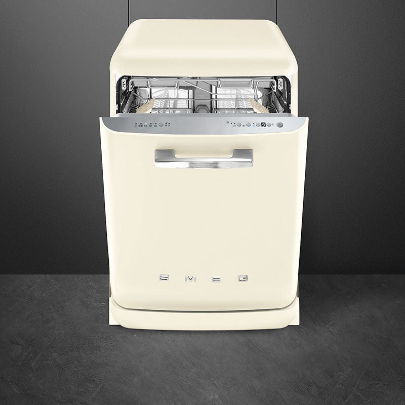 Smeg LVFABCR3 – Lavavajillas libre instalación 13 servicios, Planetarium Wash, Inverter 2.0, Crema 50’s Style